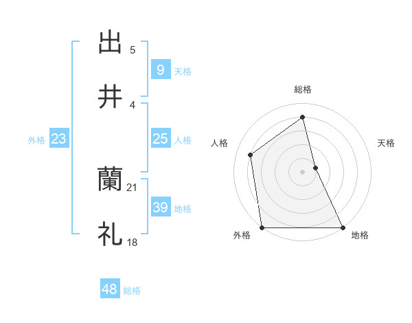 出井 蘭礼さんを姓名の画数から五運を鑑定