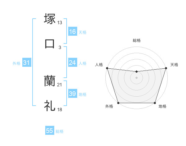 塚口 蘭礼さんを姓名の画数から五運を鑑定