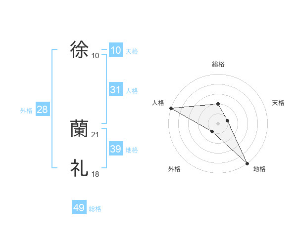 徐 蘭礼さんを姓名の画数から五運を鑑定