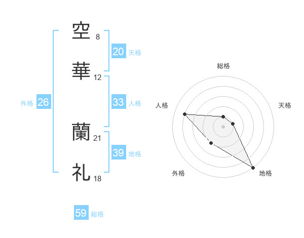 空華 蘭礼さんの総格は59画の1点!