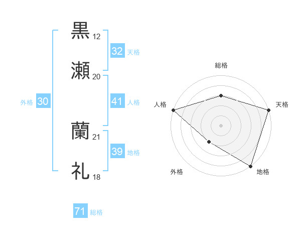 黒瀬 蘭礼さんの総格は71画の3点!