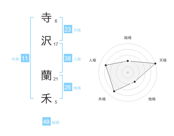 寺沢 蘭禾さんの天格は23画の5点!
