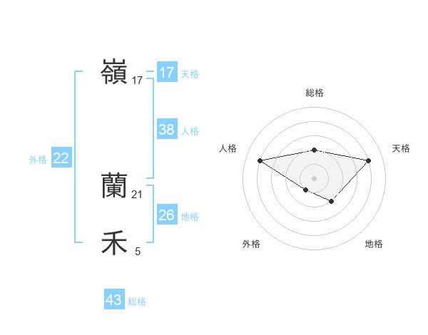 嶺 蘭禾さんの総格は43画の2点!