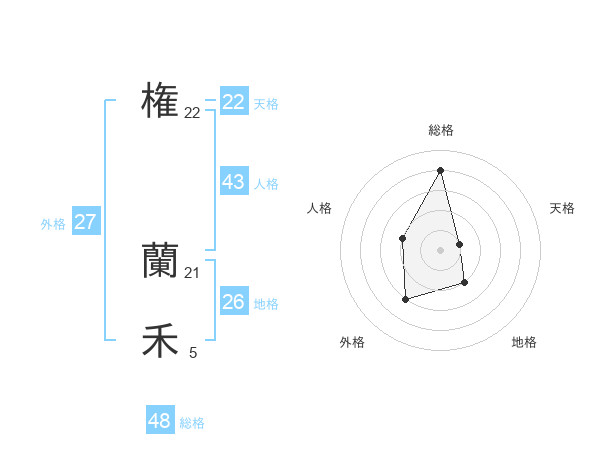 権 蘭禾さんの外格は27画の3点!
