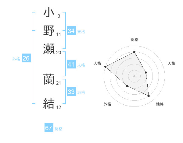 小野瀬 蘭結さんを姓名の画数から五運を鑑定