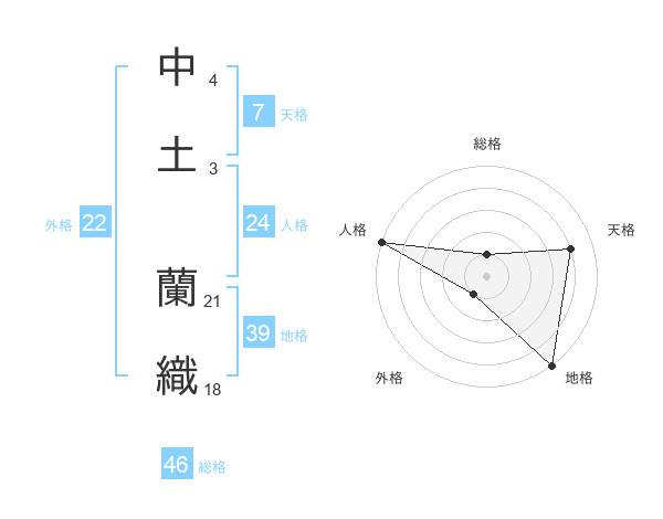 中土 蘭織さんを姓名の画数から五運を鑑定