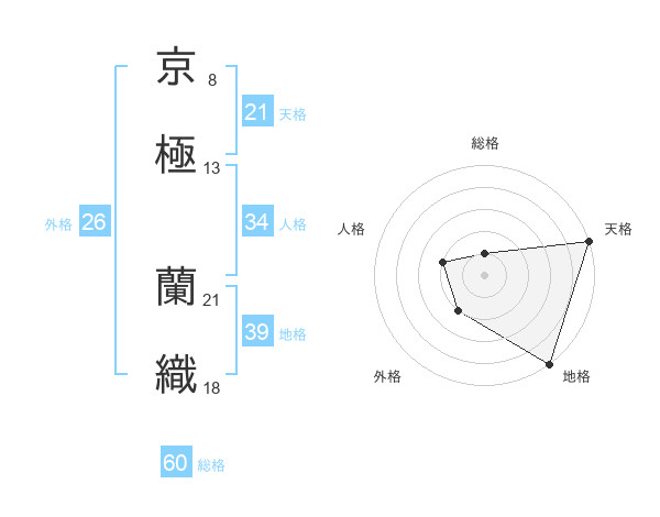 京極 蘭織さんを姓名の画数から五運を鑑定