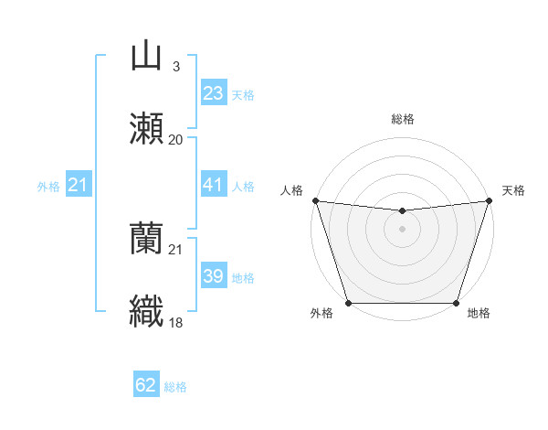 山瀬 蘭織さんの外格は21画の5点!