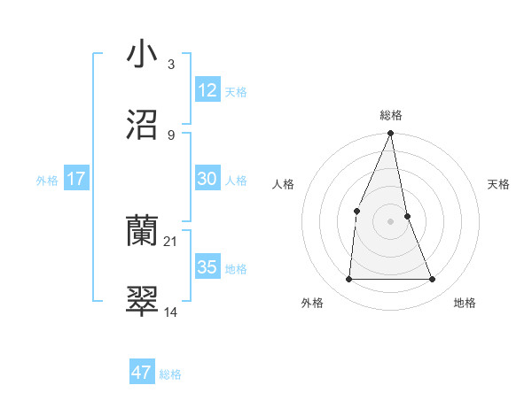 小沼 蘭翠さんを姓名の画数から五運を鑑定