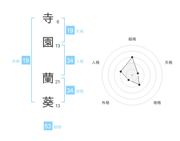 寺園 蘭葵さんの総格は53画の3点!