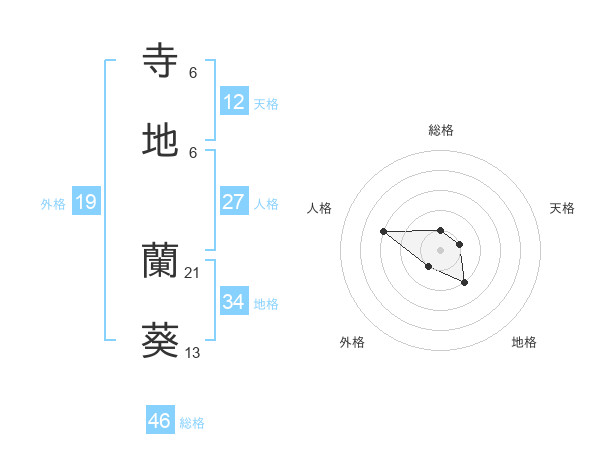 寺地 蘭葵さんの総格は46画の1点!