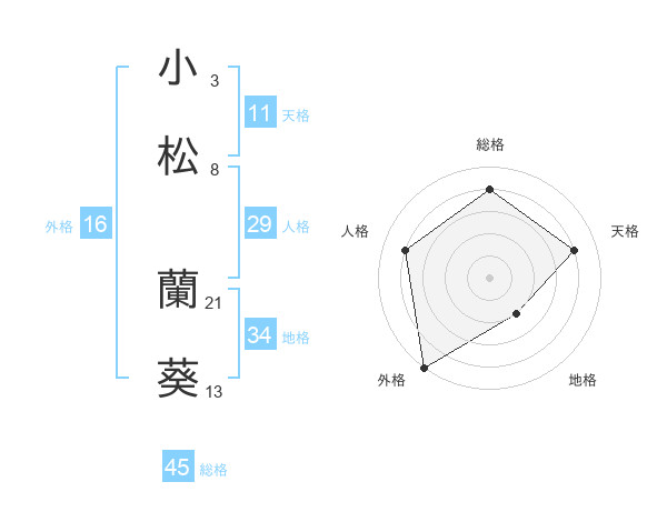小松 蘭葵さんの総格は45画の4点!