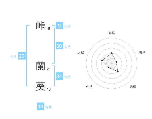 峠 蘭葵さんの総格は43画の2点!