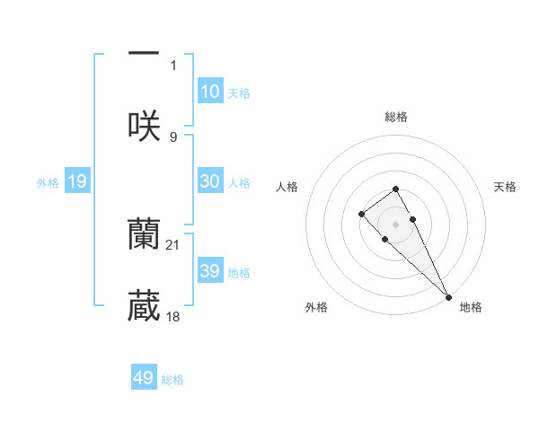 一咲 蘭蔵さんの総格は49画の2点!