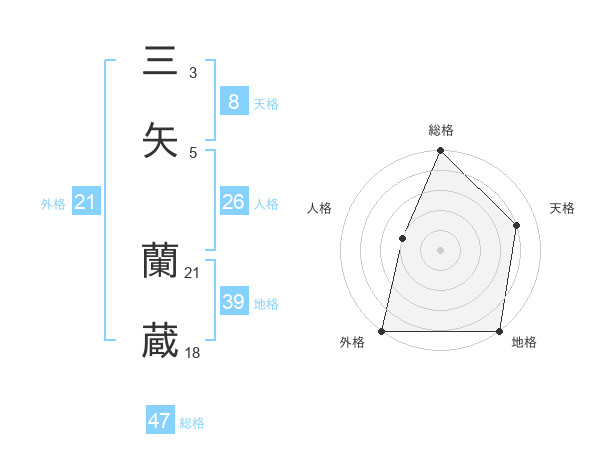 三矢 蘭蔵さんを姓名の画数から五運を鑑定