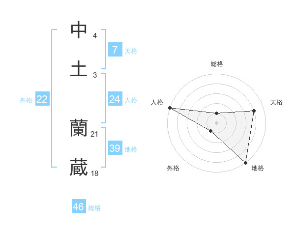 中土 蘭蔵さんの総格は46画の1点!