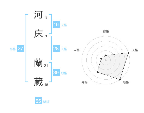 河床 蘭蔵さんの総格は55画の1点!