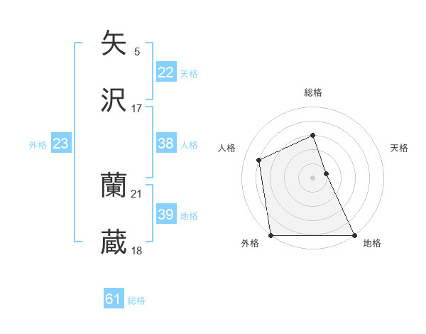 矢沢 蘭蔵さんの外格は23画の5点!
