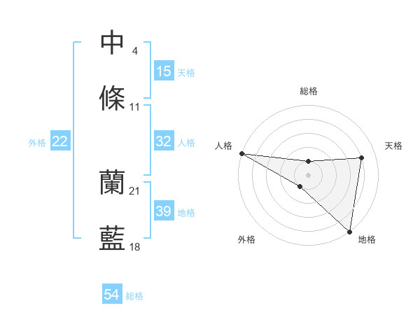 中條 蘭藍さんの外格は22画の1点!