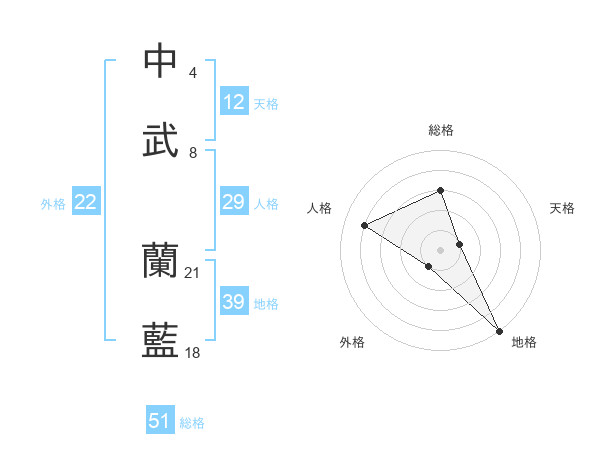 中武 蘭藍さんの総格は51画の3点!