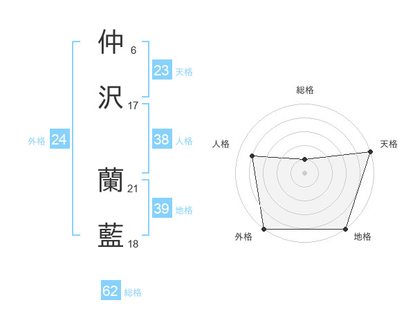 仲沢 蘭藍さんの外格は24画の5点!