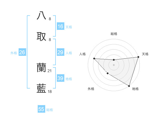 八取 蘭藍さんの総格は55画の1点!