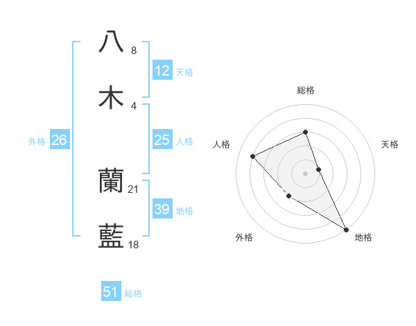 八木 蘭藍さんの総格は51画の3点!