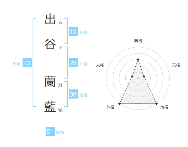 出谷 蘭藍さんの総格は51画の3点!