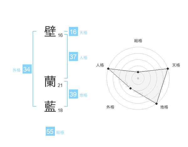 壁 蘭藍さんの天格は16画の5点!
