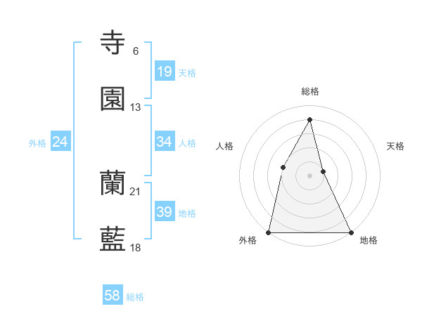 寺園 蘭藍さんの総格は58画の4点!
