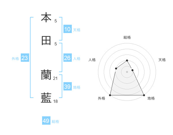 本田 蘭藍さんを姓名の画数から五運を鑑定