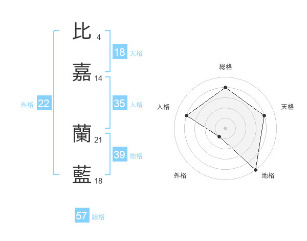 比嘉 蘭藍さんの地格は39画の5点!