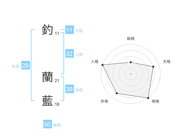 釣 蘭藍さんの総格は50画の2点!