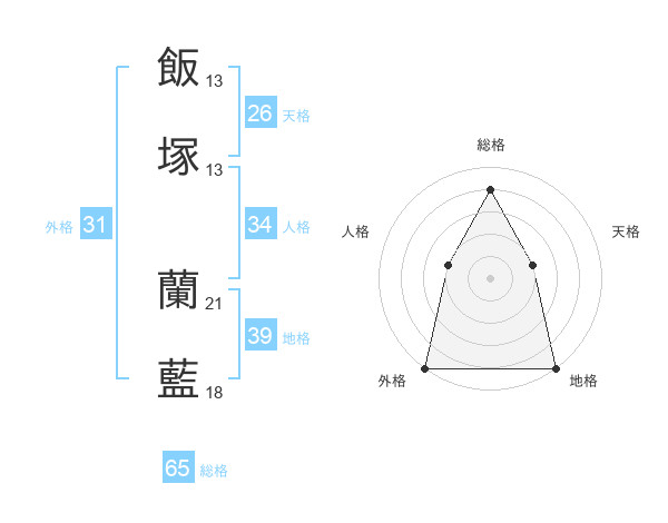 飯塚 蘭藍さんの総格は65画の4点!