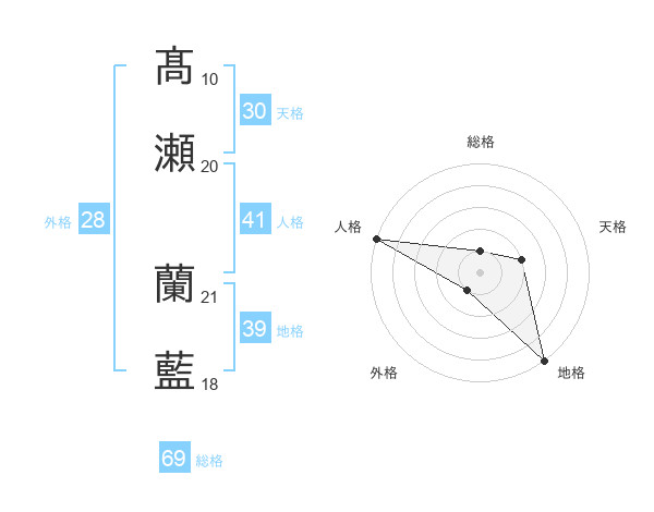 髙瀬 蘭藍さんの地格は39画の5点!