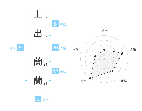 上出 蘭蘭さんの総格は50画の2点!