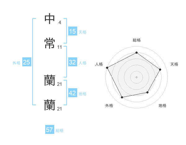 中常 蘭蘭さんの総格は57画の4点!