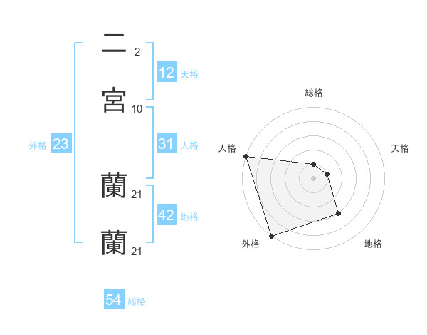 二宮 蘭蘭さんを姓名の画数から五運を鑑定