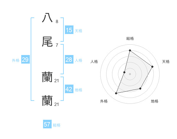八尾 蘭蘭さんの総格は57画の4点!