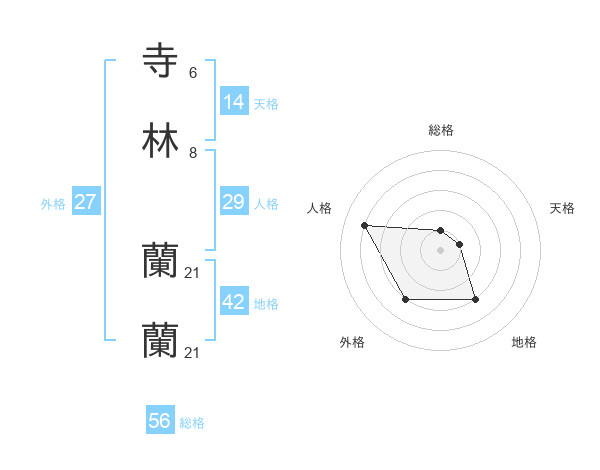 寺林 蘭蘭さんの天格は14画の1点!