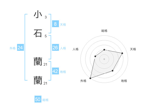 小石 蘭蘭さんの総格は50画の2点!