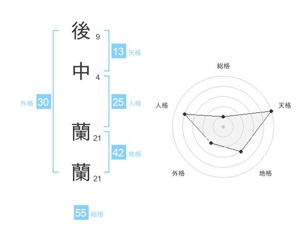後中 蘭蘭さんの天格は13画の5点!