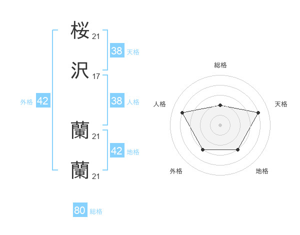 桜沢 蘭蘭さんの総格は80画の2点!
