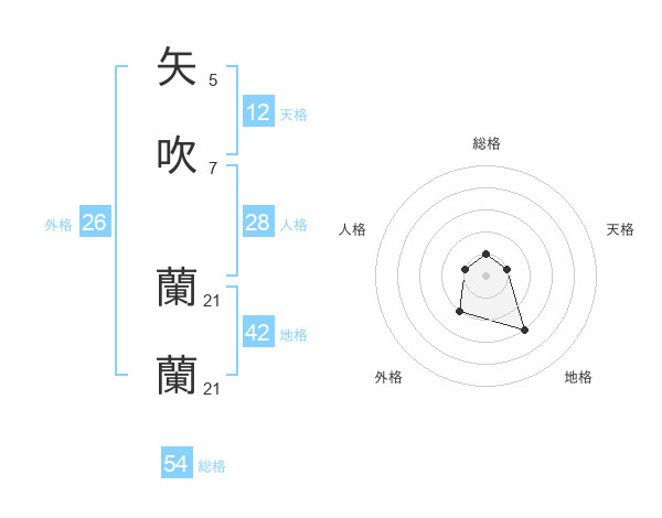 矢吹 蘭蘭さんの総格は54画の1点!