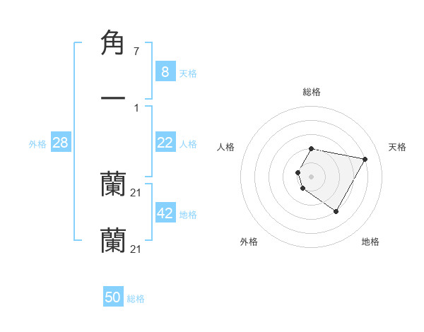 角一 蘭蘭さんの総格は50画の2点!