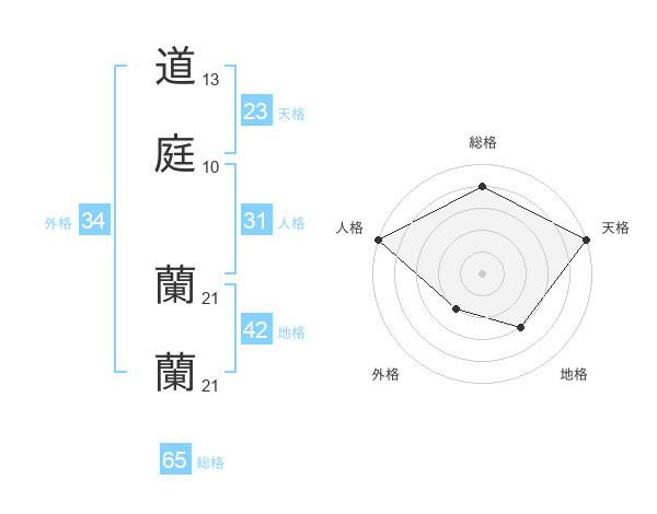 道庭 蘭蘭さんを姓名の画数から五運を鑑定