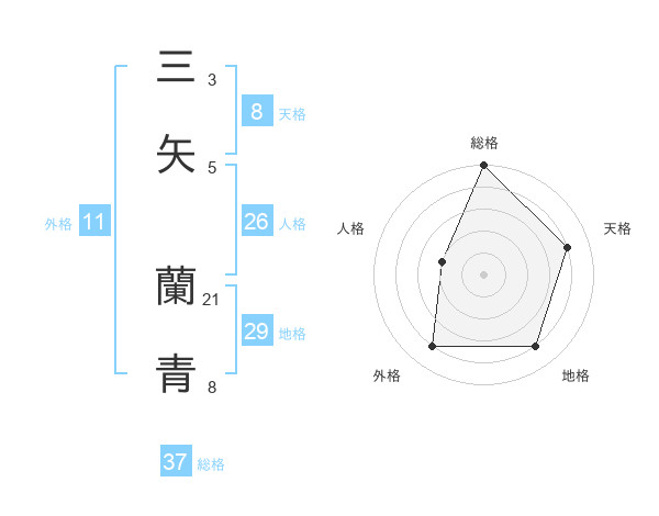 三矢 蘭青さんを姓名の画数から五運を鑑定