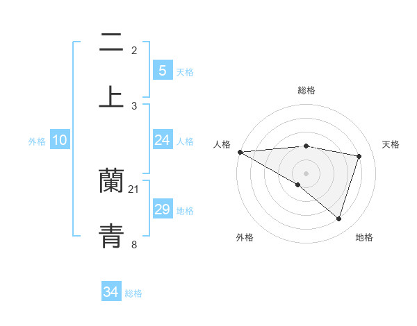 二上 蘭青さんの総格は34画の2点!