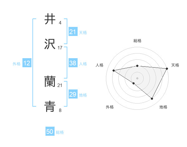 井沢 蘭青さんの総格は50画の2点!