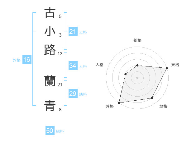 古小路 蘭青さんの総格は50画の2点!